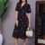 Vibrant, tiered mini-dress featuring an intricate, lace-trimmed V-neckline and tasseled hems on the sleeves and skirt. It offers a flattering, flowy fit perfect for a chic, bohemian style.
